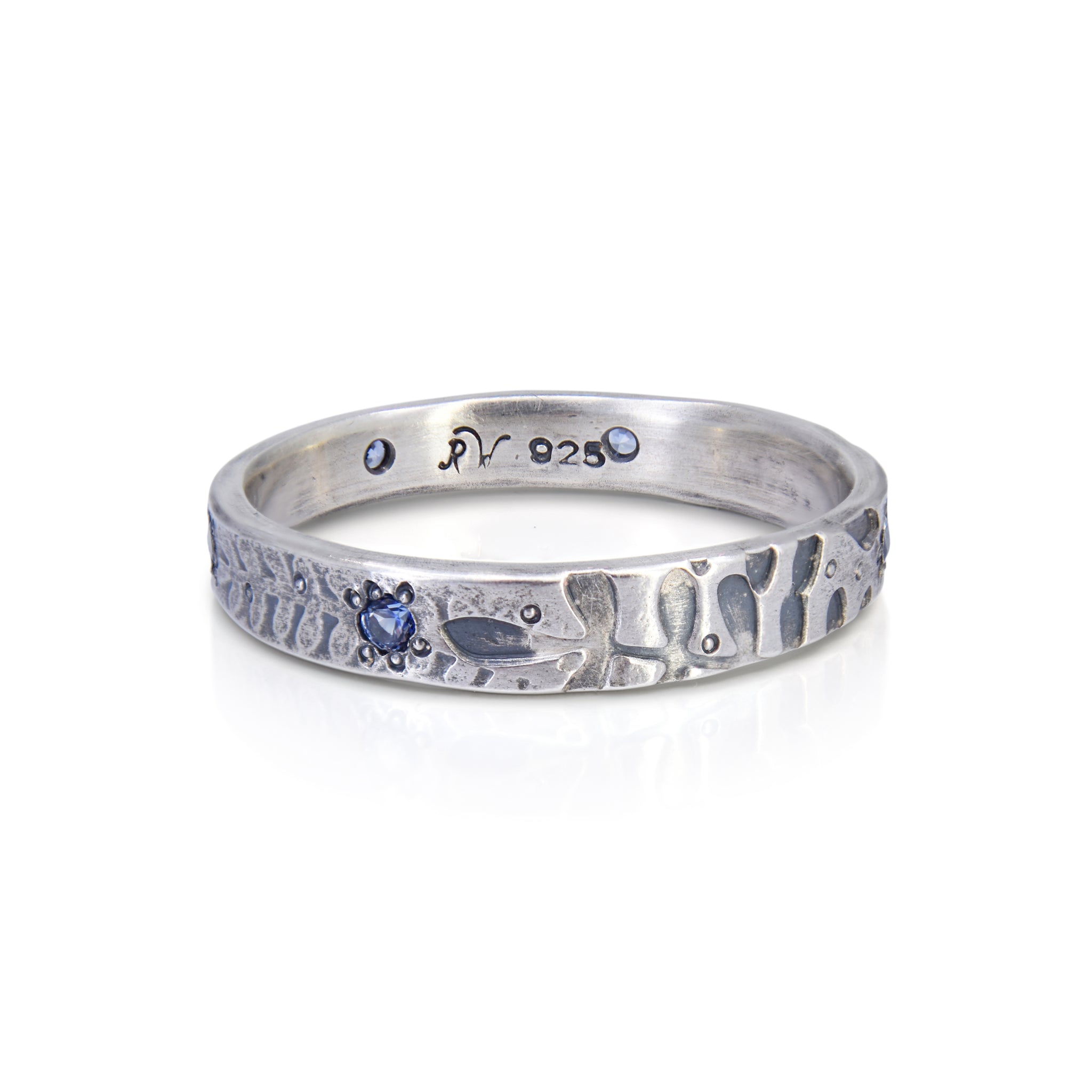 M Materials: Sterling silver and round blue sapphire x 4